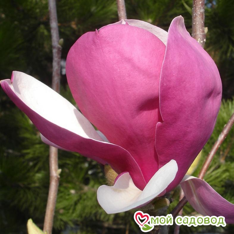 Магнолия Rustica Rubra — новый сорт с красивыми бокаловидными и крупными цветками. Цветы округлой формы, розово-красного цвета снаружи, а внутри бело-розовые, распускаются в конце апреля до начала мая. Растет в виде невысокого деревца с низкой кроной или как широкий кустарник высотой до 5-7 метров. Растение распускает свои цветки на голых ветках. Предпочитает гумусовые свежие пропускаемые почвы, защищенные места.